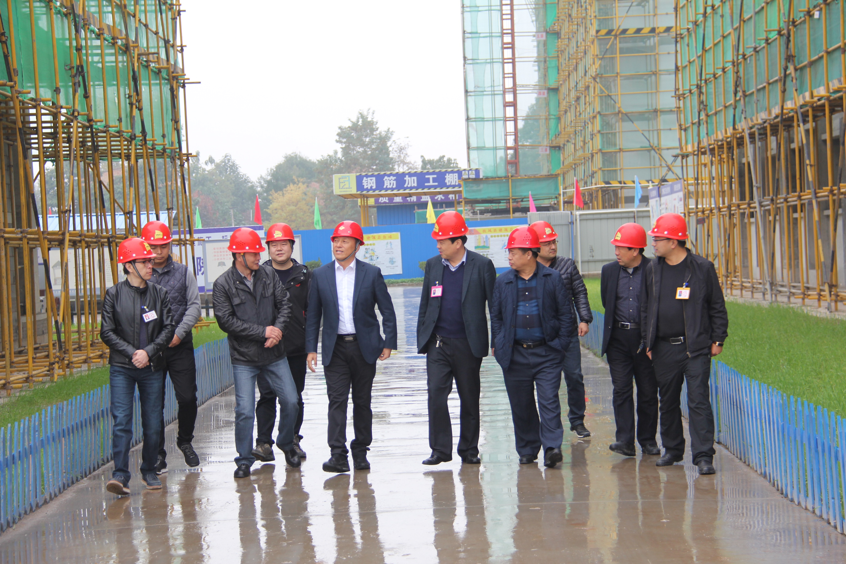 楊總一行先后前往了第二工程公司扶風(fēng)社會(huì)福利中心項(xiàng)目及扶風(fēng)高中綜合教學(xué)樓項(xiàng)目、第十七工程公司扶風(fēng)縣法門鎮(zhèn)移民搬遷工程項(xiàng)目、第五分公司扶風(fēng)體育運(yùn)動(dòng)中心項(xiàng)目。在調(diào)研過程中,各生產(chǎn)單位負(fù)責(zé)人首先就項(xiàng)目建設(shè)方面情況向楊總作了匯報(bào),并陪同調(diào)研組成員對(duì)施工現(xiàn)場的工程質(zhì)量和安全進(jìn)行了深入檢查。楊總每到一處,都認(rèn)真對(duì)現(xiàn)場各環(huán)節(jié)進(jìn)行檢查詢問,發(fā)現(xiàn)有問題的地方,立即要求組織整改,并安排后續(xù)復(fù)查工作。他表示,施工質(zhì)量代表著企業(yè)實(shí)力,施工安全關(guān)乎每一位員工、每一個(gè)家庭的幸福。希望大家要從思想上、行動(dòng)上提高安全防范意識(shí),加快建設(shè)進(jìn)度,確保按期完成目標(biāo)任務(wù)。