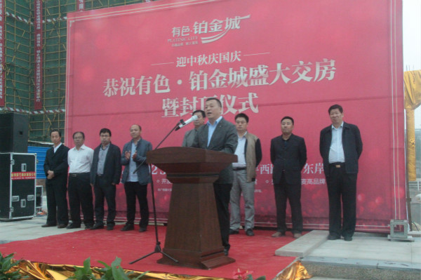 9月30日,由有色置業(yè)開發(fā)、有色陜建承建的有色鉑金城迎來了34、35、43#樓交房暨33、44#樓盛大封頂儀式。戶縣濱河新區(qū)管理辦公室、陜西有色建設有限公司、陜西有色萬通建材有限公司、陜西有色置業(yè)有限公司相關領導,有色鉑金城各參建單位及新老客戶蒞臨會場,共襄盛舉,活動現場禮炮齊鳴,鑼鼓喧天,氣氛熱烈濃郁。
